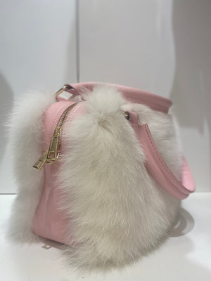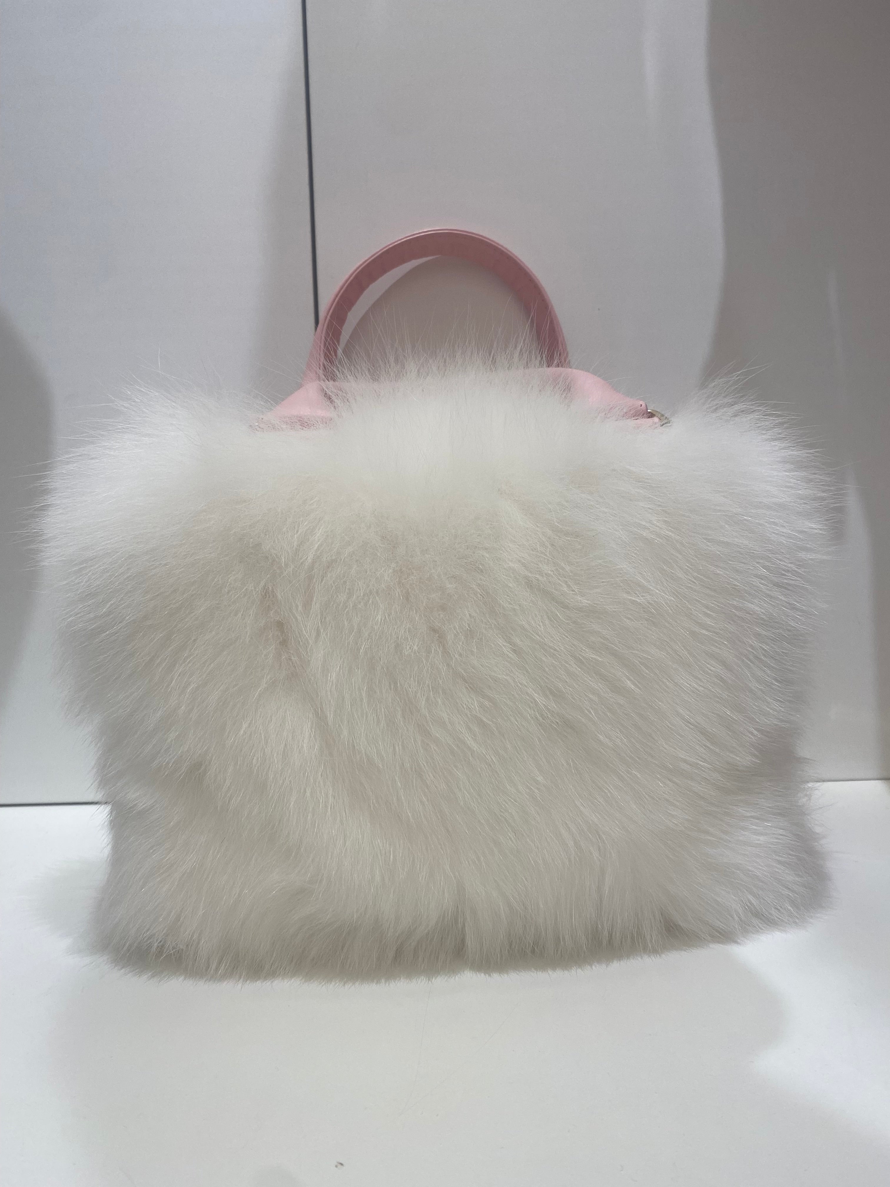 Borsa in volpe shadow bianco e rifiniture in vera pelle,  con tracolla.
