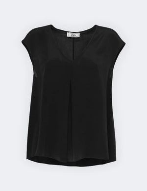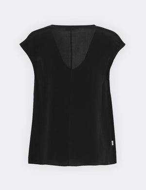 Blusa in misto seta in tinta unita e scollo a V.