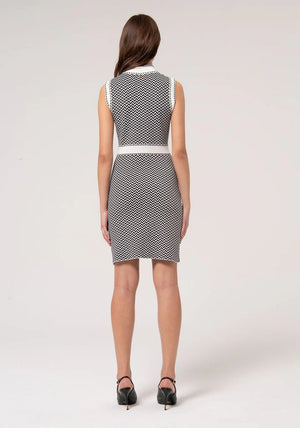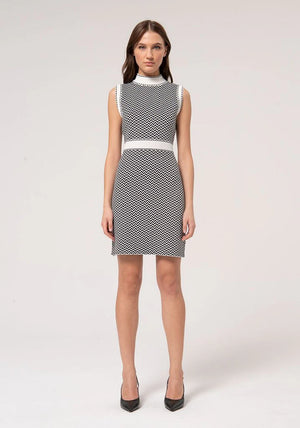 Abito in maglia con collo koreana jacquard black and cream, giro manica.