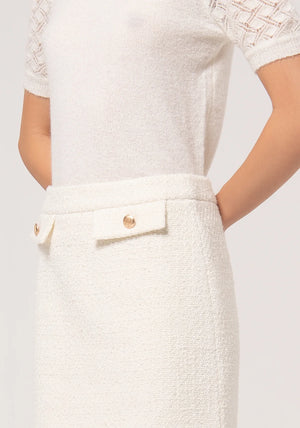 Gonna slim mini in tweed, vita regolare, e con zip sul retro per apertura.