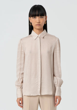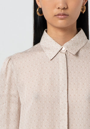 DESCRIZIONE: Camicia regular con stampa geometrica, colletto classico, bottoni nascosti, e con maniche lunghe.